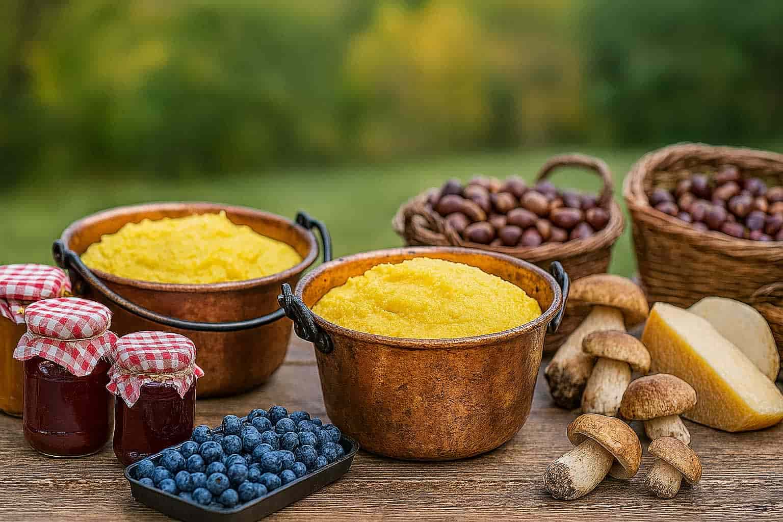 La rappresentazione dell'offerta gastronomica verterà sui metodi tradizionali di preparazione. Oltre ai prodotti delle farine,cioè la polenta creata nei tradizionali paioli di rame e condite con sughi di cinghiale o salsiccia,si potranno provare e comprare marmellate di frutti di bosco,come mirtilli e castagne, oltre che formaggi,funghi,piadine ed altri prodotti tipici frutto dell'artigianato locale o dei metodi di preparazione locale.